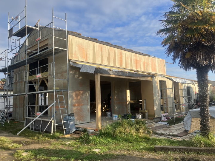 Chantier à Ile d'Oléron Chantier de rénovation d'une maison existante, avec des constructions en ossature bois.
