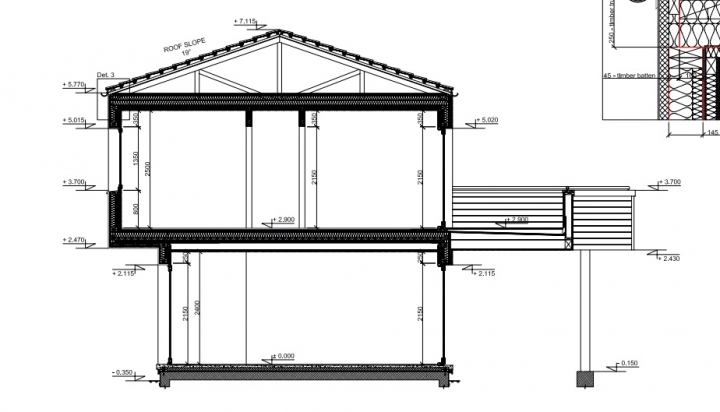 L'étude pour la maison à Gousainville presque finie, la livraison est prévue pour fin juin. Dans la maison il y a un studio intégré, pour cette raison le plancher et les murs sont prévus avec une isolation acoustique plus importante que d'habitude.